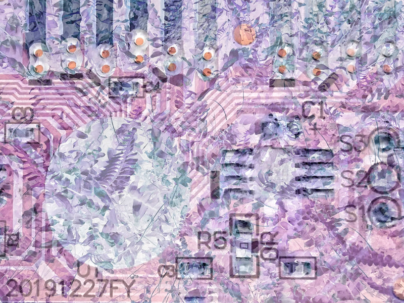 第二個探索則嘗試將科技產品的內部構造與自然元素融合在一起;前者象徵我作為工程師的理性面,而後者代表我作為藝術家的感性面。理性與感性經常在我的自我實現旅程中產生衝突,而我試圖將兩者視覺化並融合在一起,就像我努力讓這兩個面向在我的生命中能夠共存共榮。