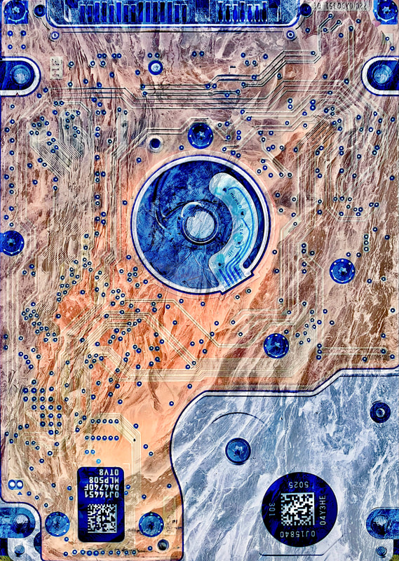 Be No.28 - The bark of a paperbark tree and the hard drive from my wife's broken laptop.