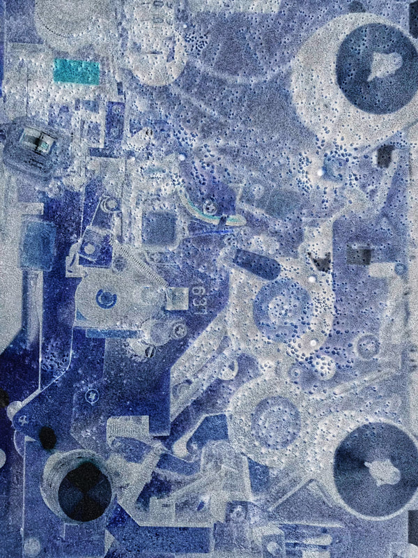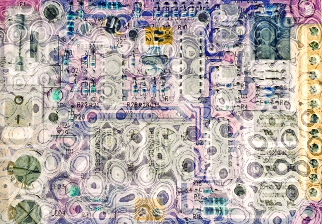 Be No.21 - The moss on a rock in a brook and the circuit board of a pinball machine.