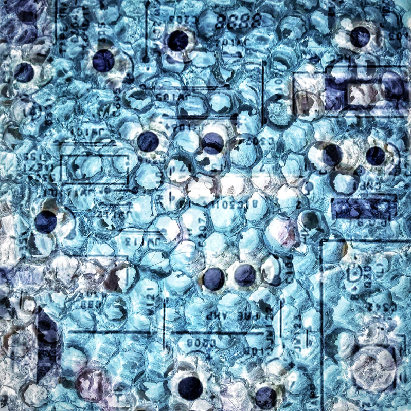 第二個探索則嘗試將科技產品的內部構造與自然元素融合在一起;前者象徵我作為工程師的理性面,而後者代表我作為藝術家的感性面。理性與感性經常在我的自我實現旅程中產生衝突,而我試圖將兩者視覺化並融合在一起,就像我努力讓這兩個面向在我的生命中能夠共存共榮。