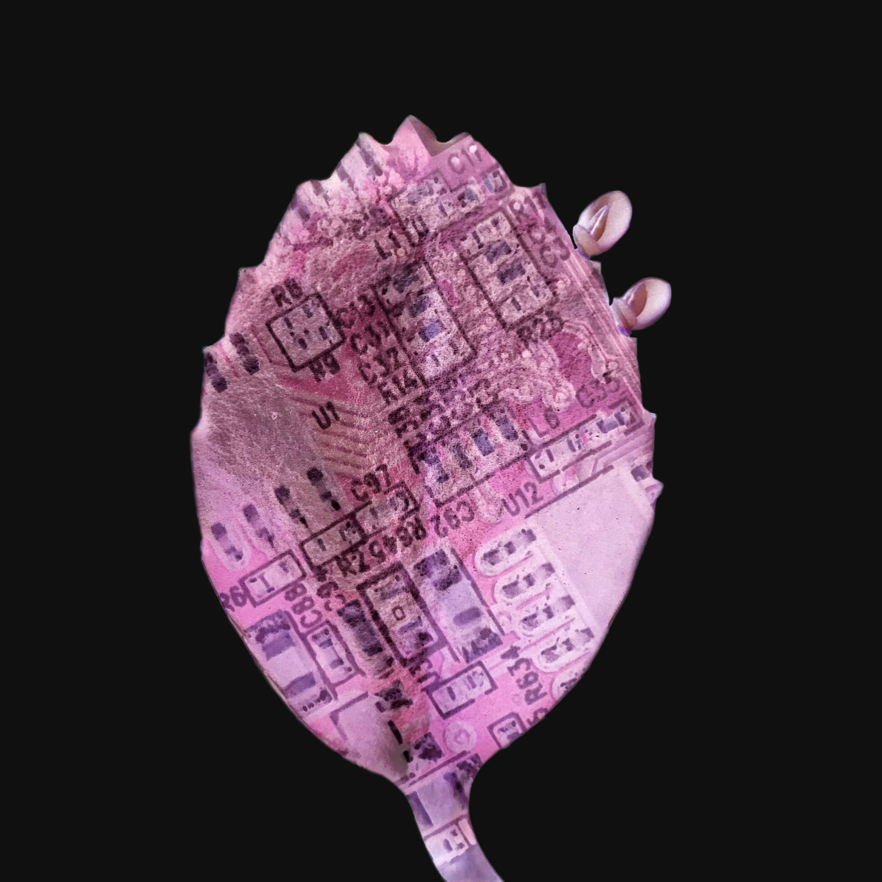 第二個探索則嘗試將科技產品的內部構造與自然元素融合在一起;前者象徵我作為工程師的理性面,而後者代表我作為藝術家的感性面。理性與感性經常在我的自我實現旅程中產生衝突,而我試圖將兩者視覺化並融合在一起,就像我努力讓這兩個面向在我的生命中能夠共存共榮。