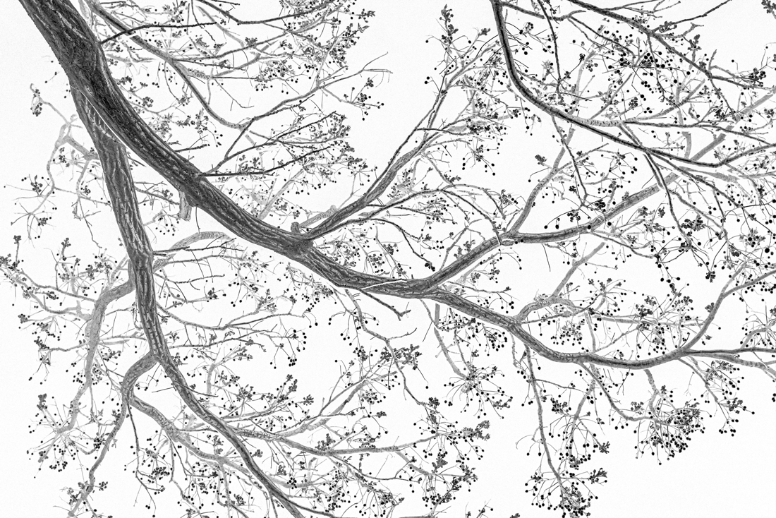 在拍攝樹木的過程中,我偶爾發現了一個特別的視角:通過黑白反相來詮釋黑暗中的樹木,從而展開了 Black Day 與 White Night 這兩個姐妹系列的探索。